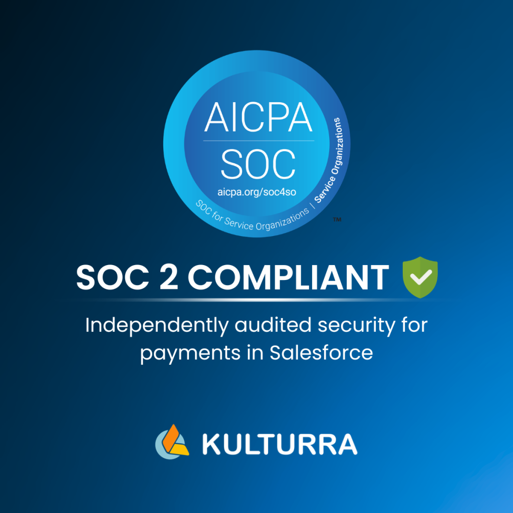 At Kulturra, SOC 2 isn’t just a milestone, it’s part of a broader commitment to building secure, reliable payment infrastructure directly inside Salesforce.
